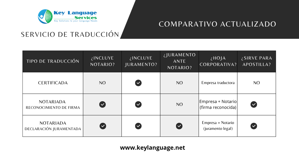 En Key Language Services, ofrecemos tres tipos de traducción profesional, cada una con respaldo legal y características específicas. Aquí te explicamos sus diferencias para que tomes la mejor decisión.